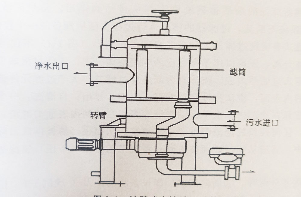 轉(zhuǎn)臂式自清洗濾水器是一種集約化的濾水器,多個濾筒安裝于一個濾水器筒體內(nèi),結(jié)構(gòu)緊湊,如下圖所示。